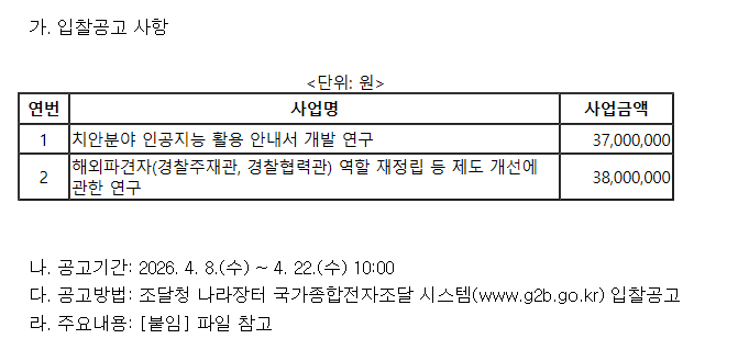 2026년 치안정책연구소 정책연구용역과제 입찰공고