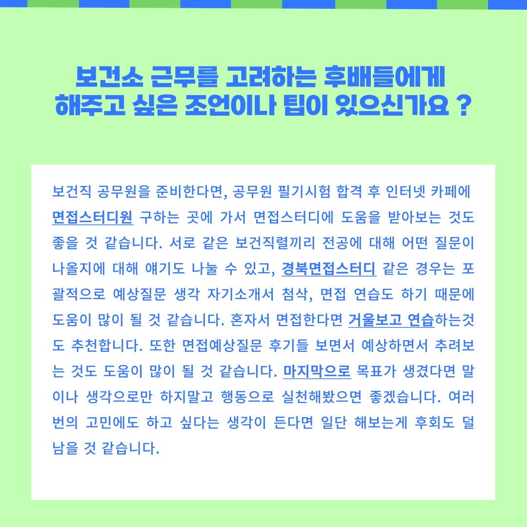 <보건직 공무원> 이은영 졸업생 인터뷰